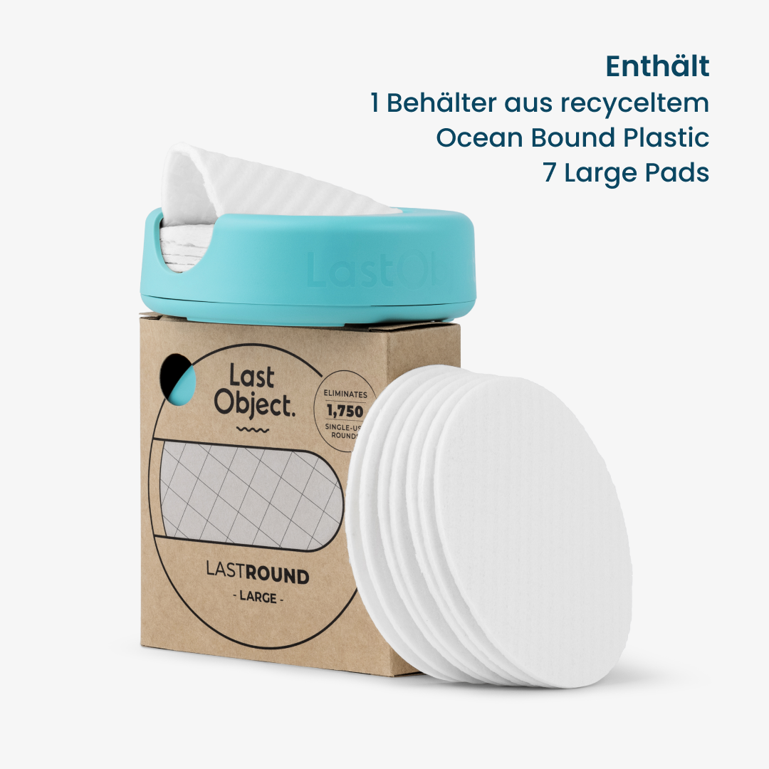 Komplettes Set mit LastSwab, LastRound Original, Pro, large & 7 Nachfüllpackungen sowie einem Wäschebeutel.